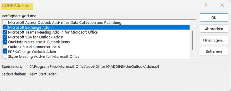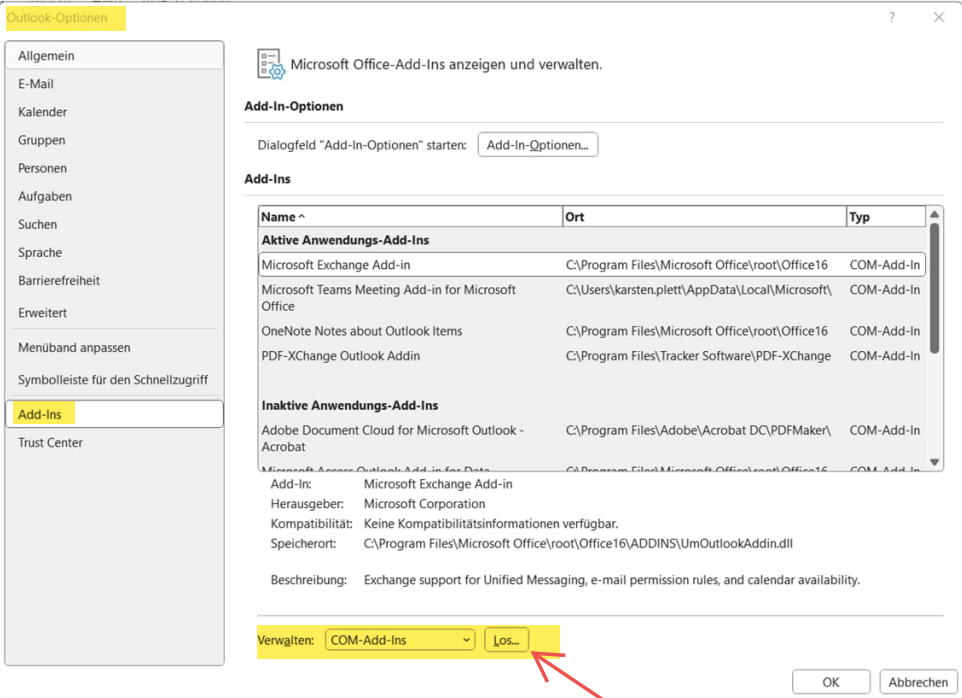 Weiter geht es im Menü Add-Ins, dort bitte bei „Verwalten:“ COM-Add-Ins