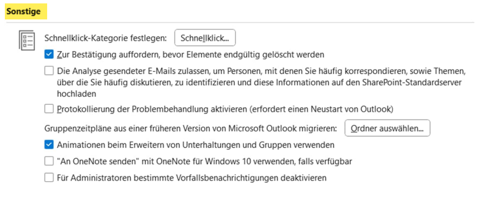 Hier gelangt man in ein neues Fenster „Outlook-Optionen“. Ganz unten steht eine Option zu